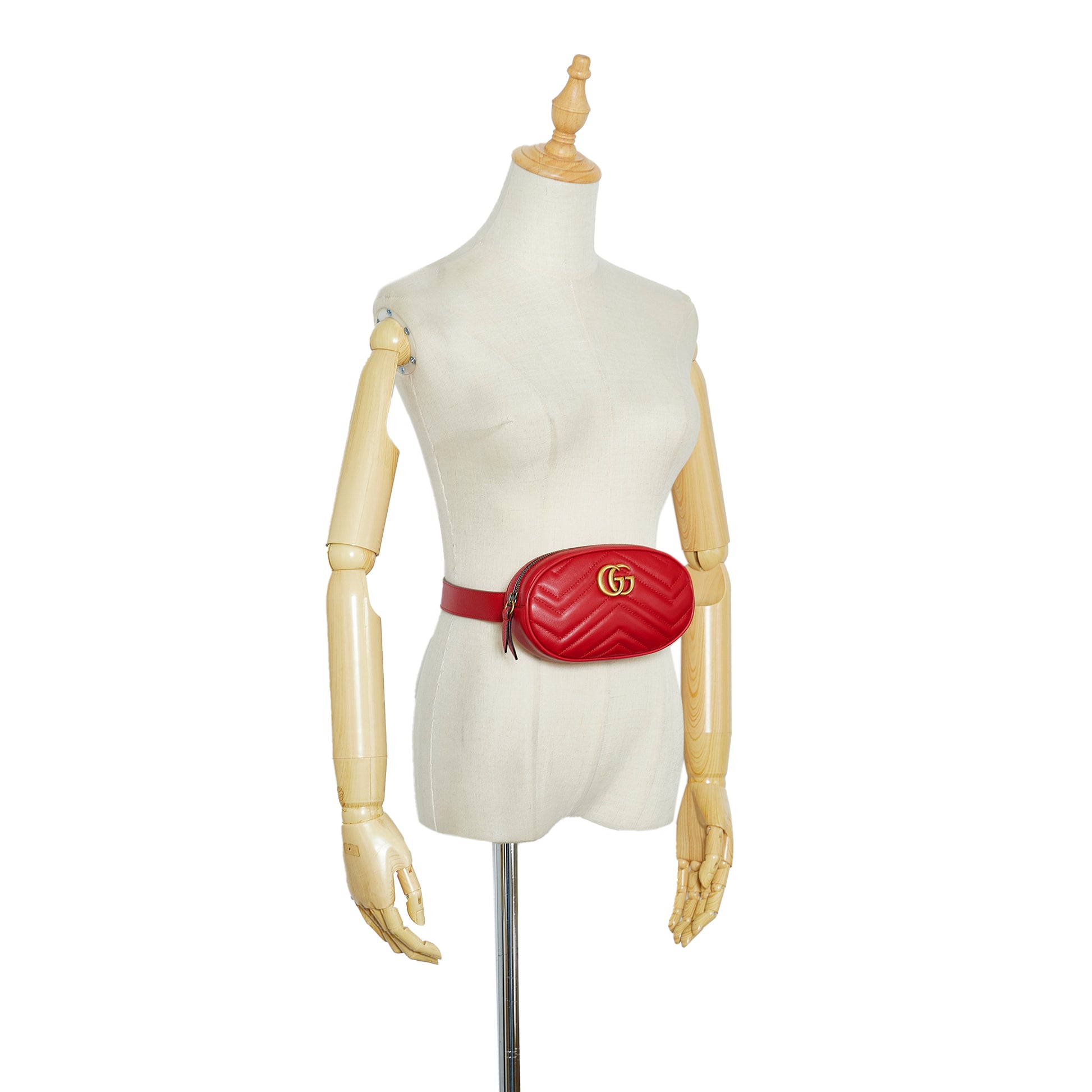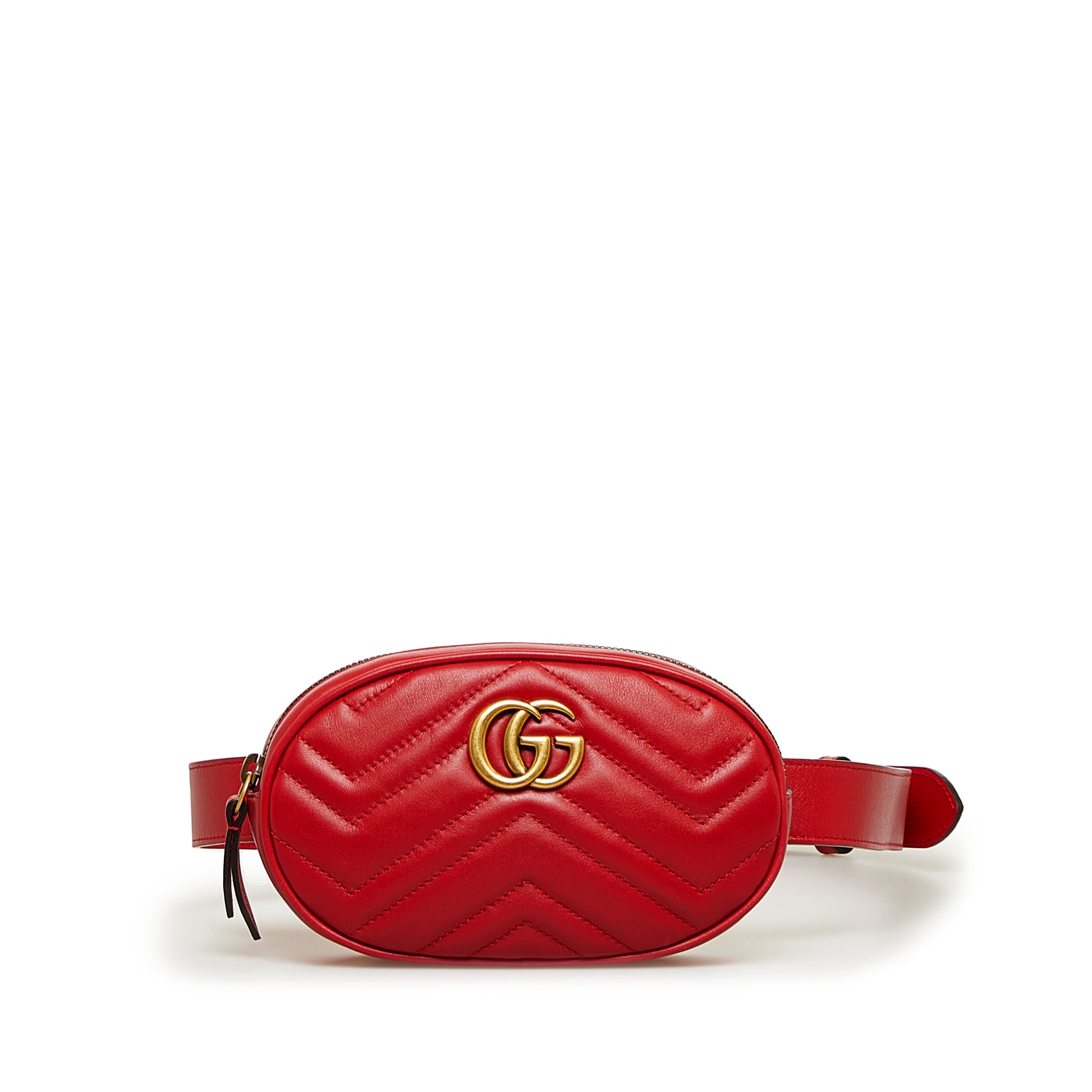 This belt bag features a quilted leather body, an adjustable flat leather waist strap, a top zip closure, and an interior slip pocket.
