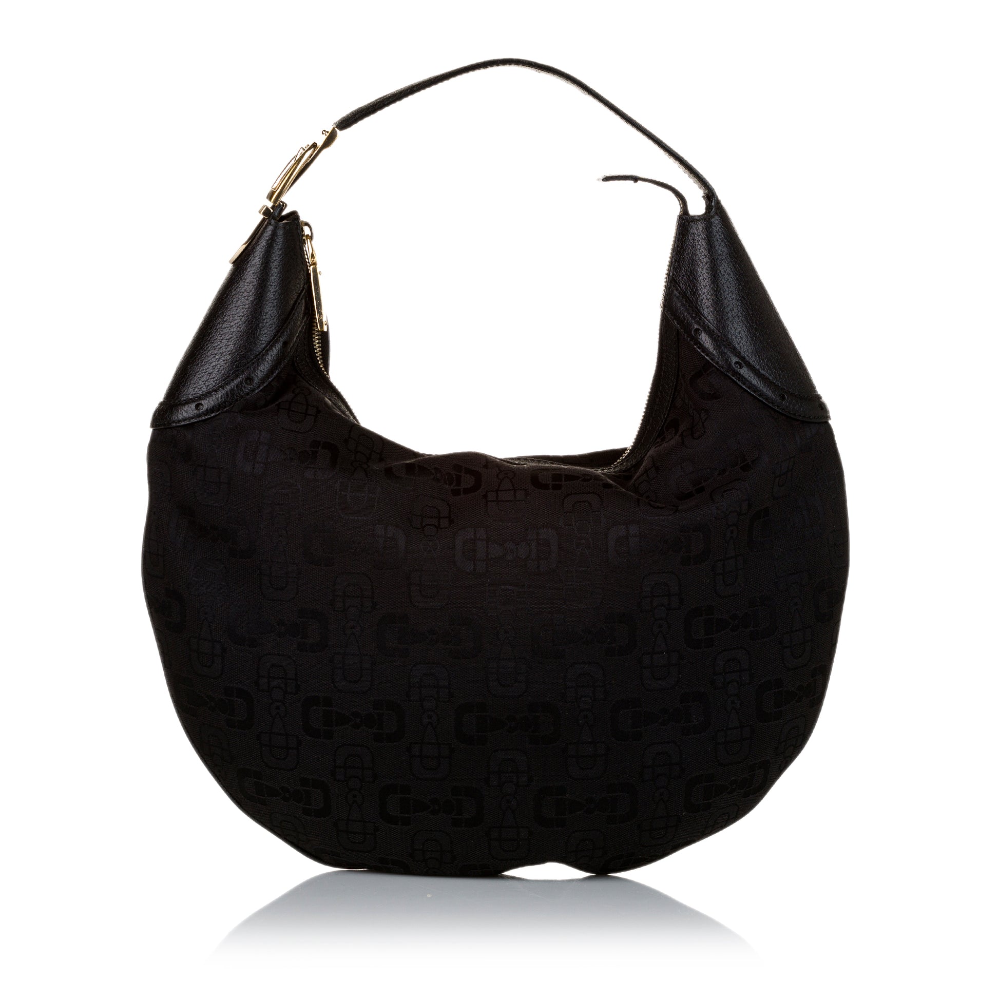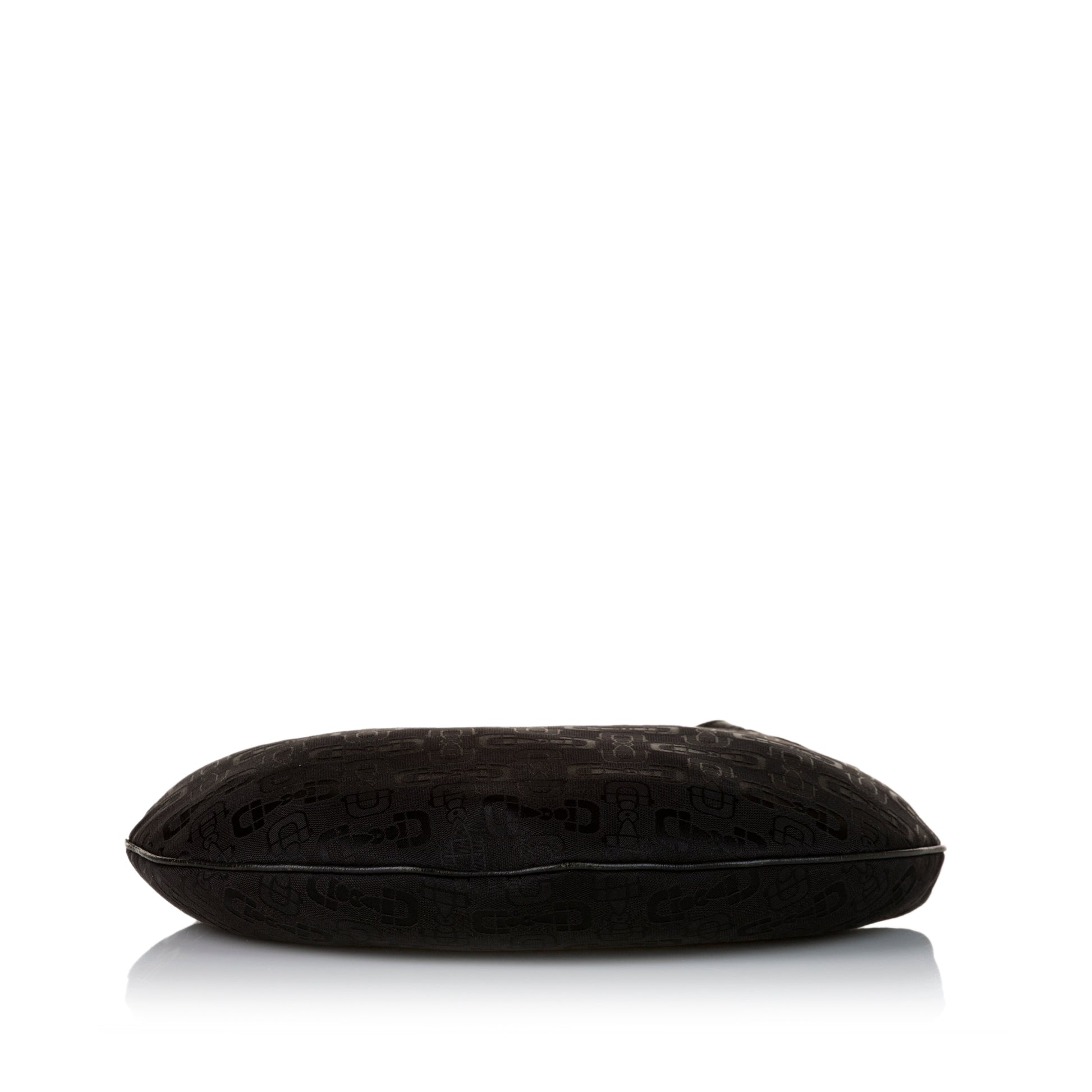 The Horsebit Jacquard Glam Hobo features a jacquard fabric, a leather Trim, a flat leather strap, an interior slip pocket, and a top zip closure.