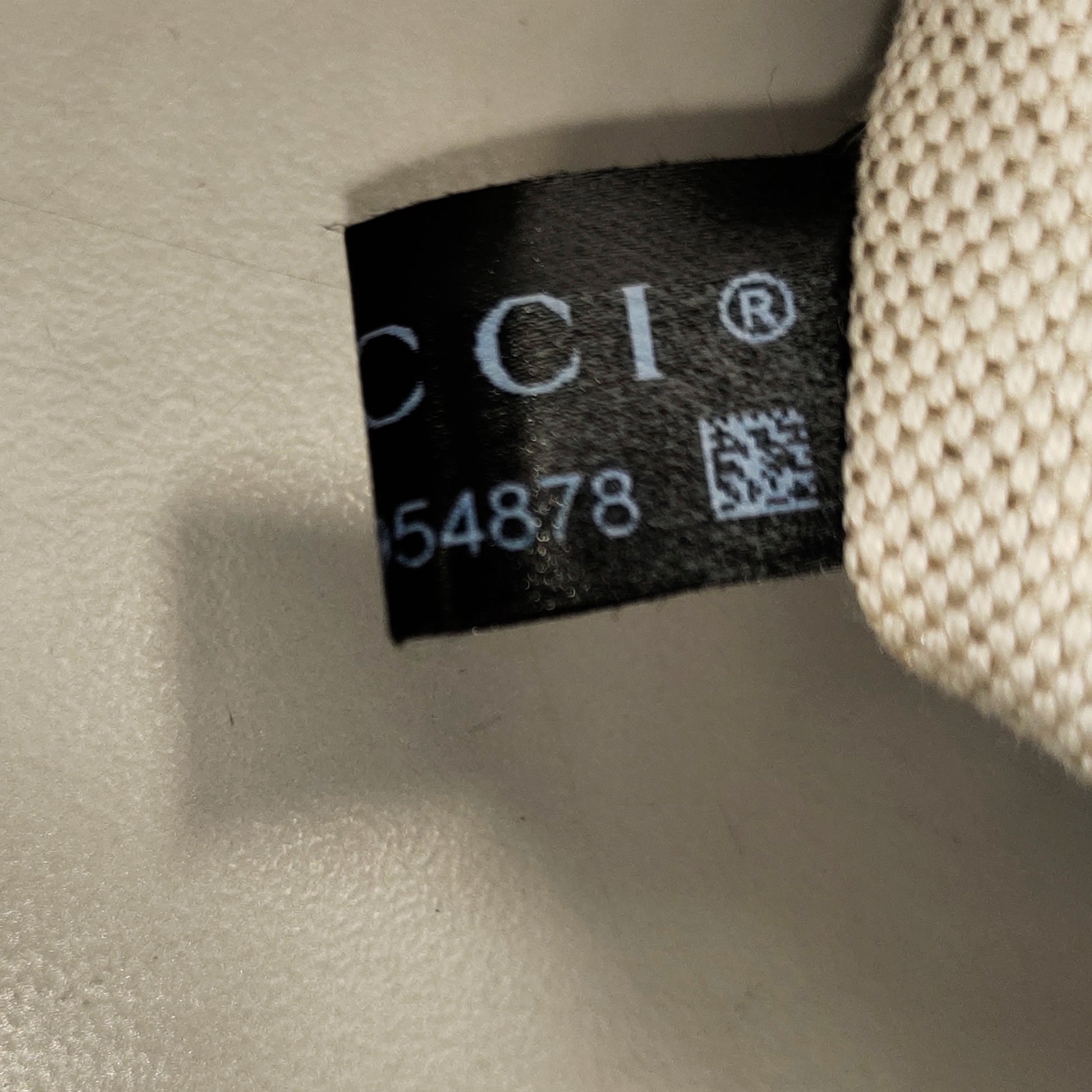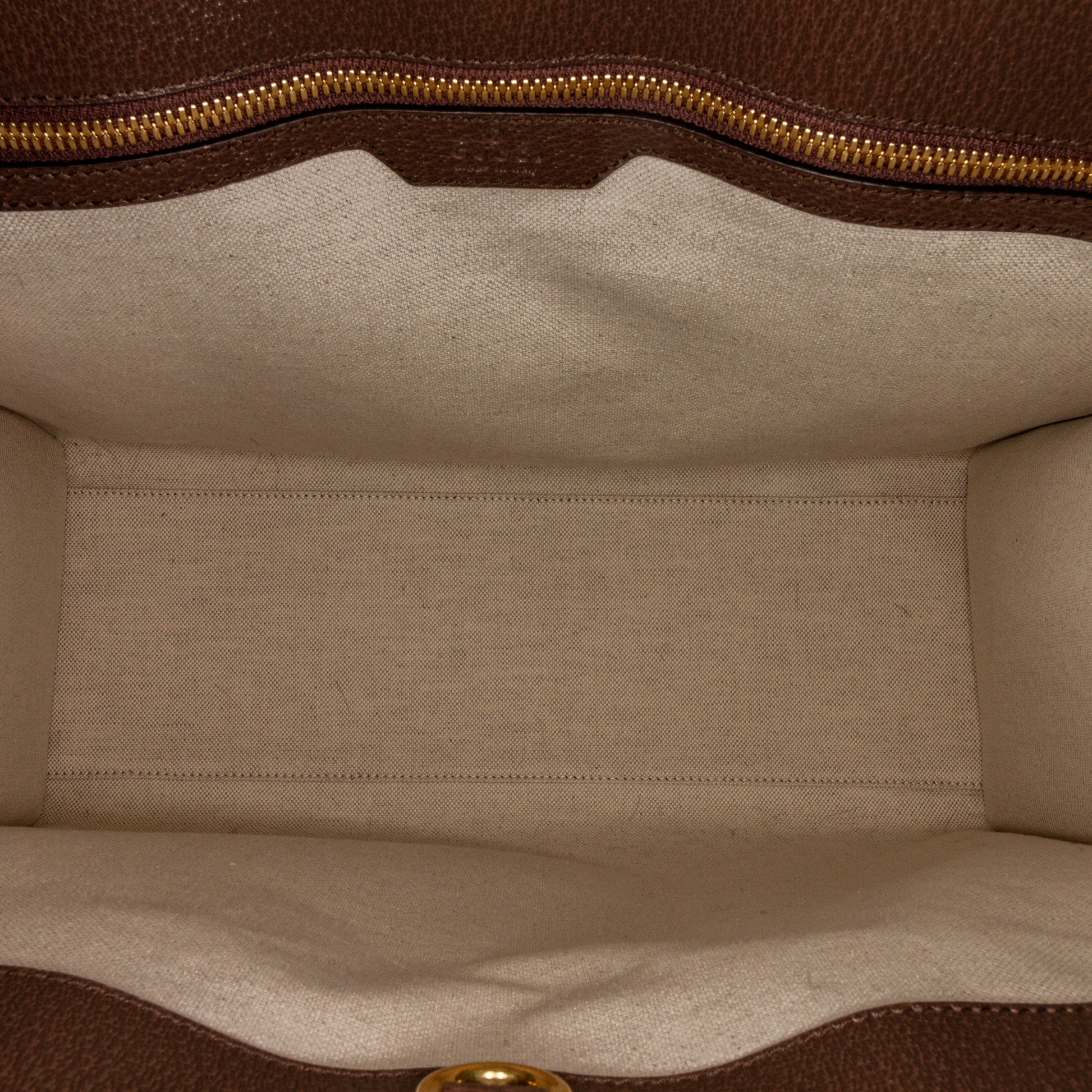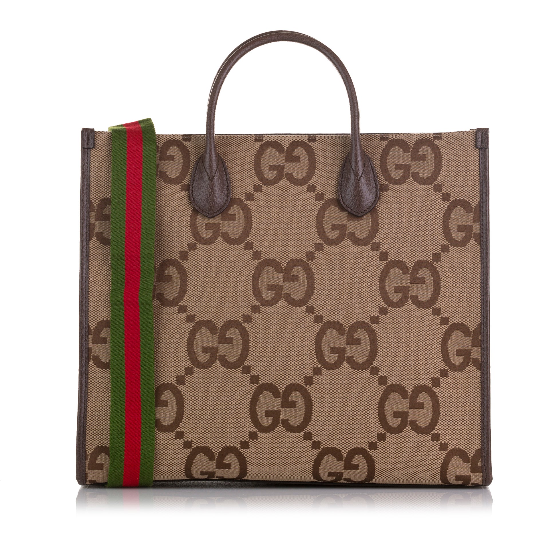 This tote bag features a canvas body with leather trim, rolled leather handles, a detachable flat nylon web strap, an open top with hook closure, and an interior zip pocket.