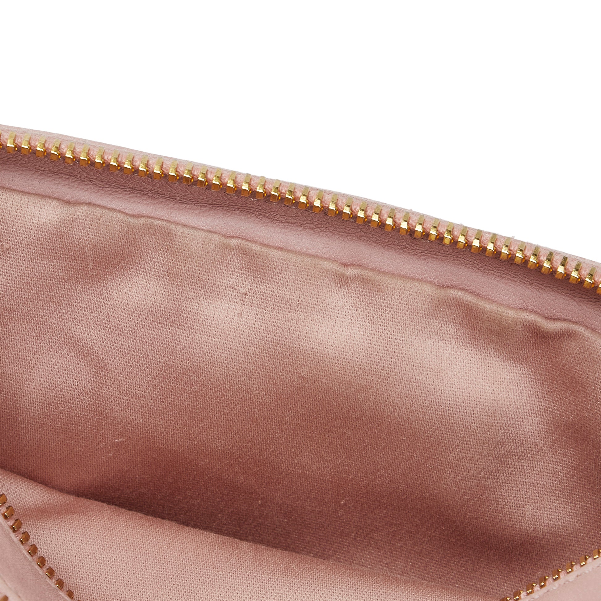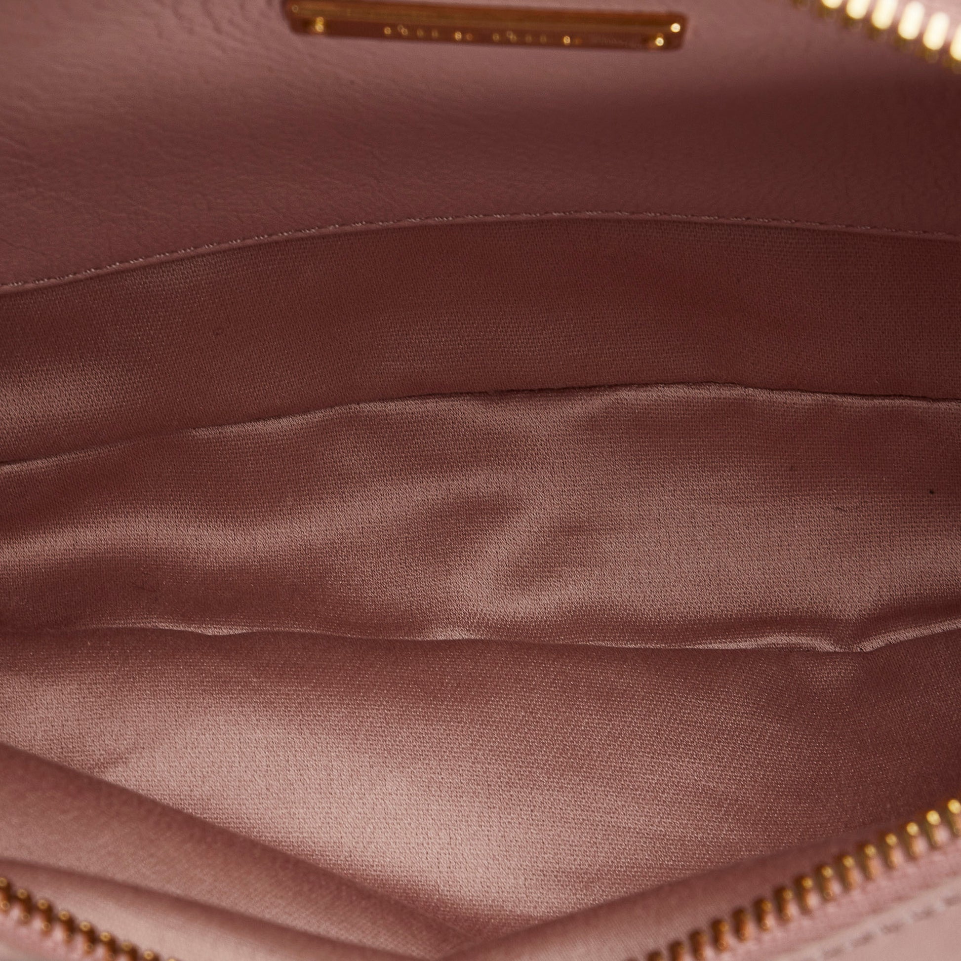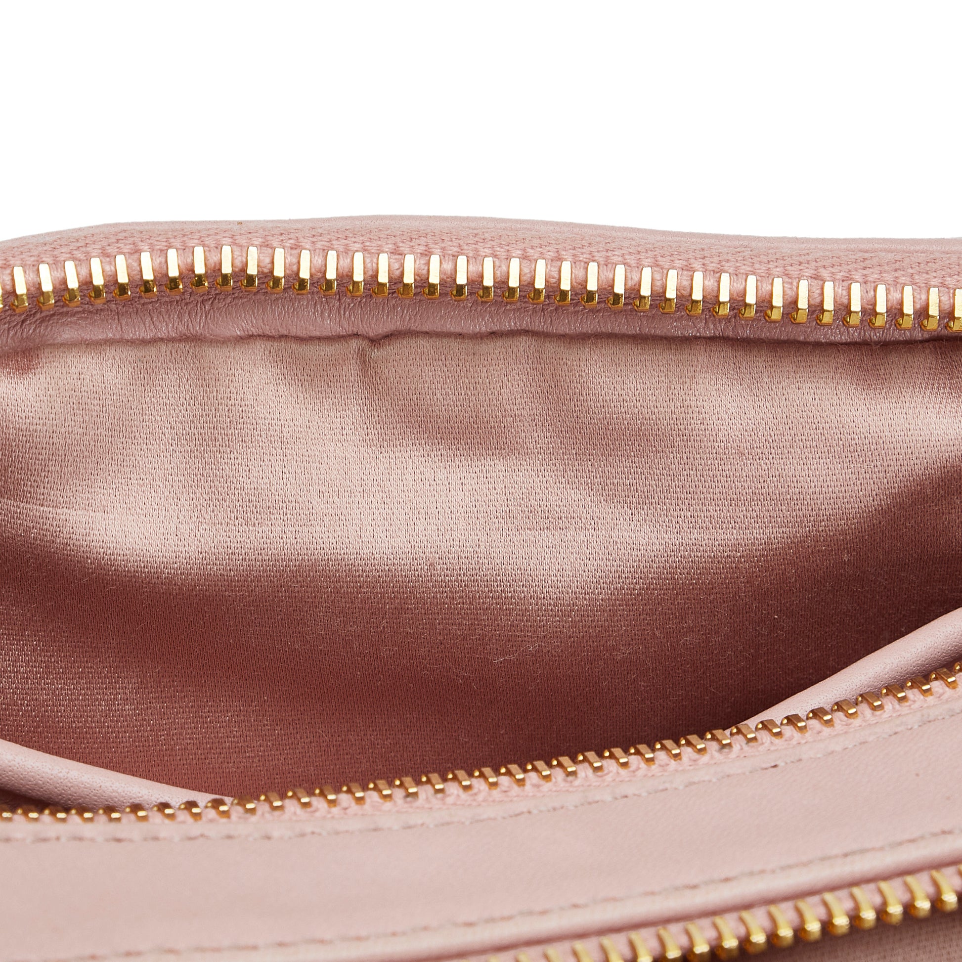 This crossbody bag features a quilted leather body, an adjustable flat strap, and a top zip closure.