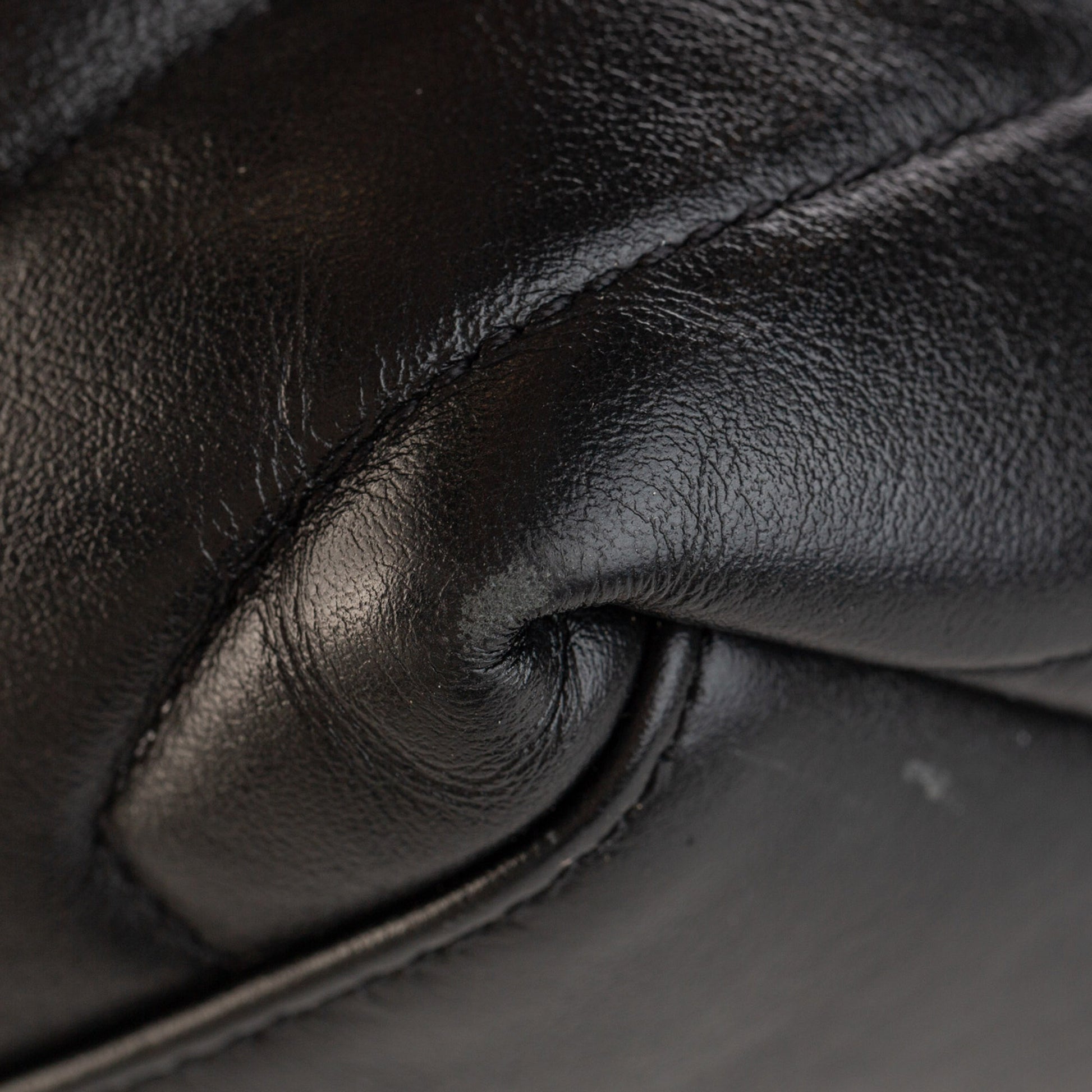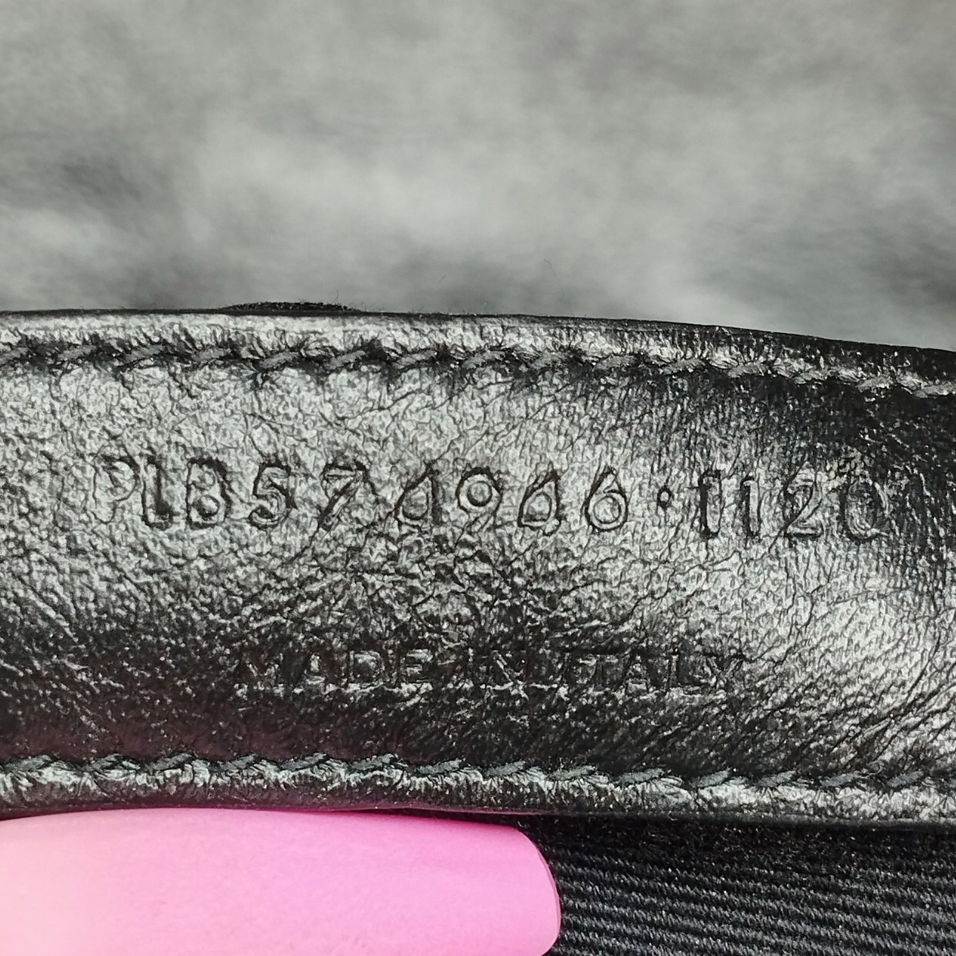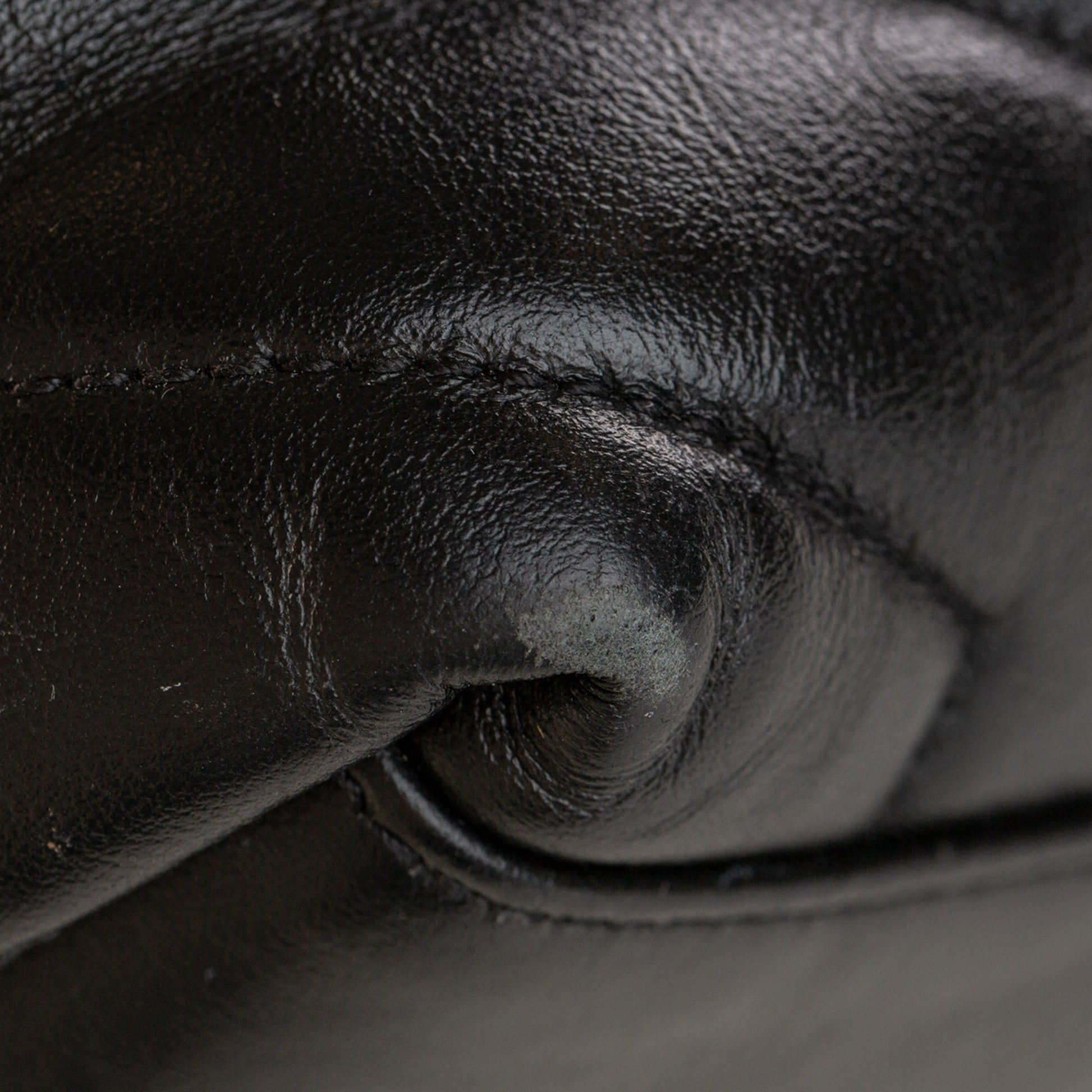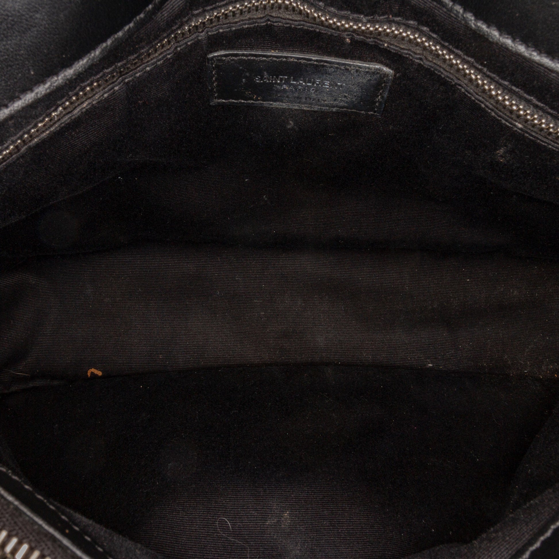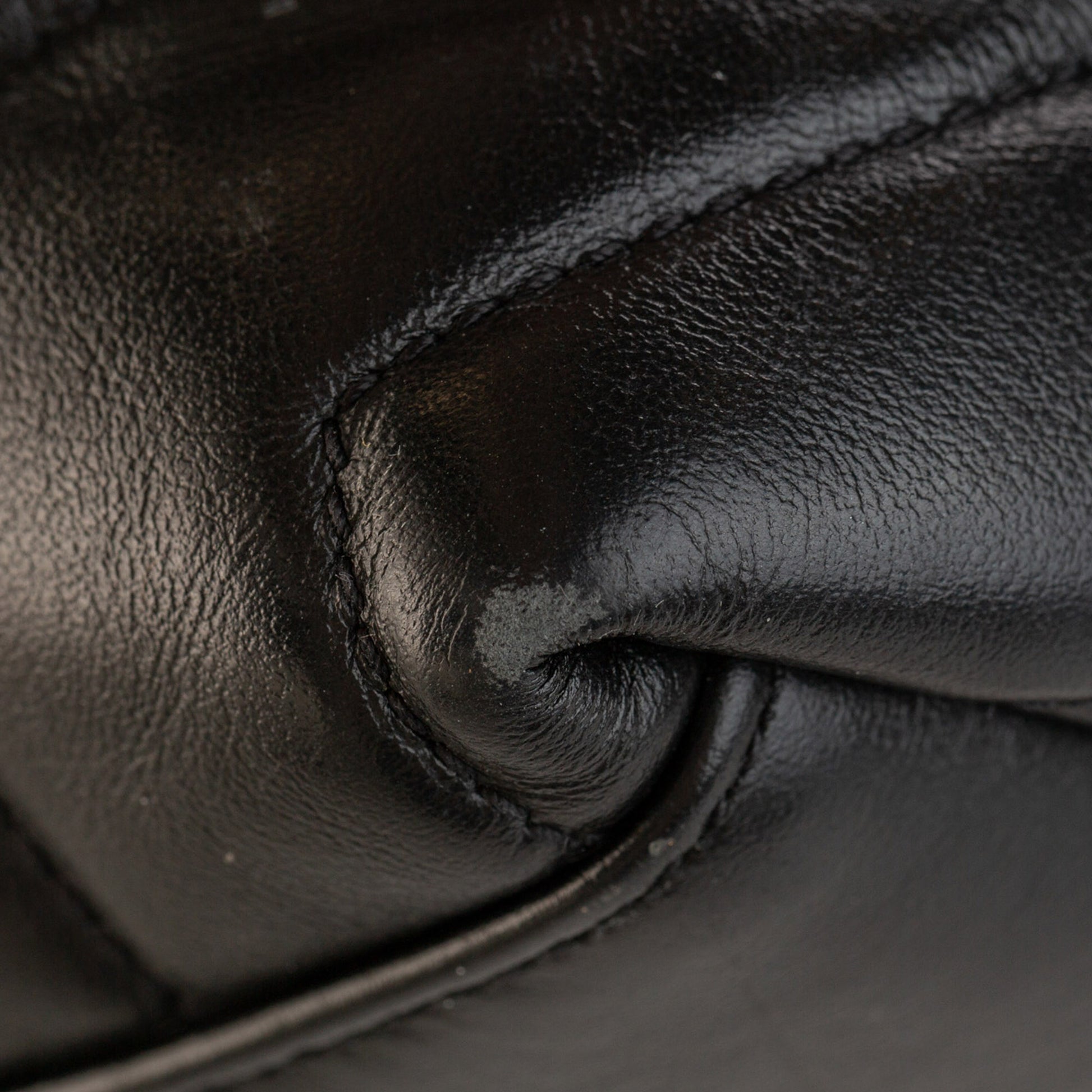 The LouLou features a quilted leather body, curb chain straps, a front flap with a magnetic snap button closure, an interior zip compartment, and an interior zip pocket.