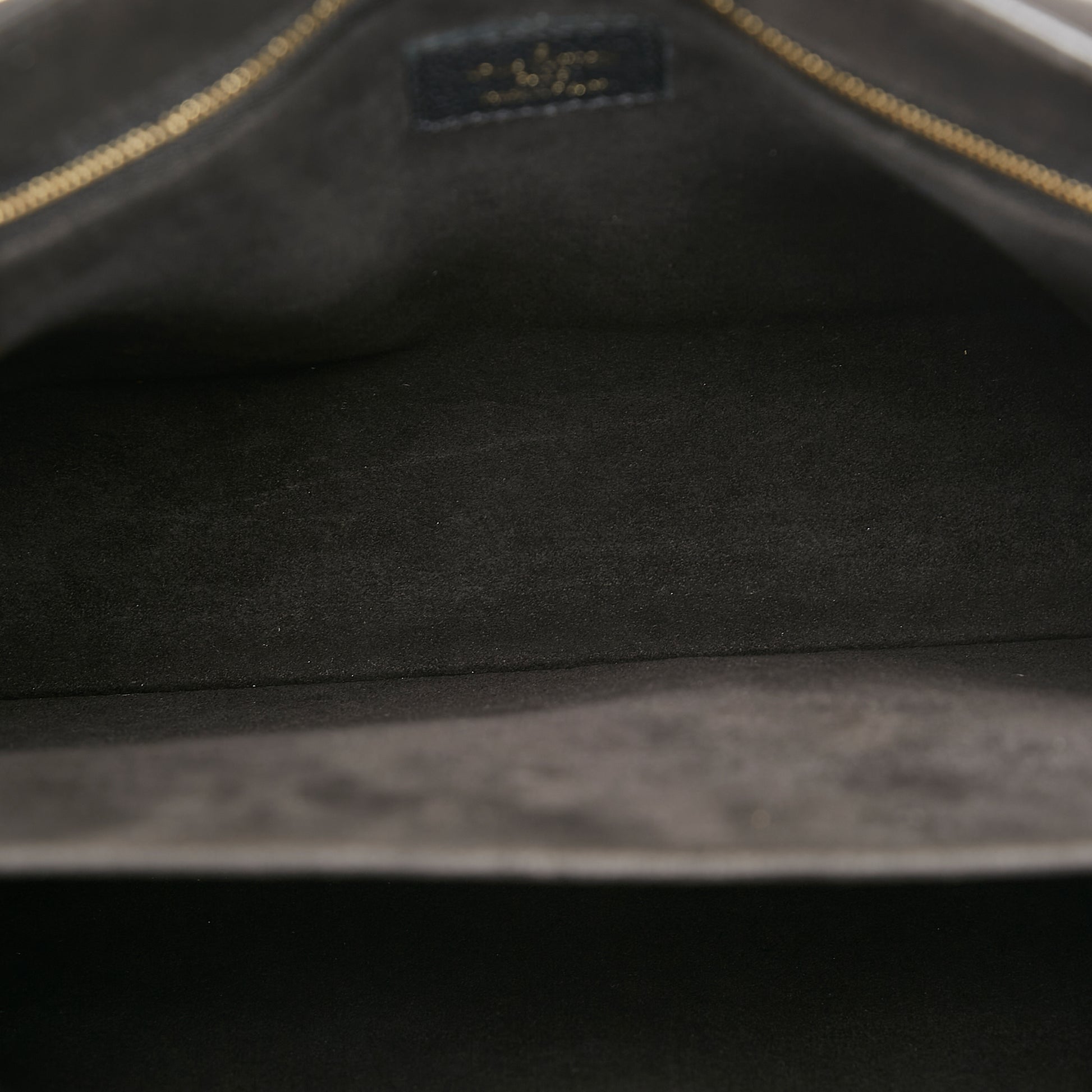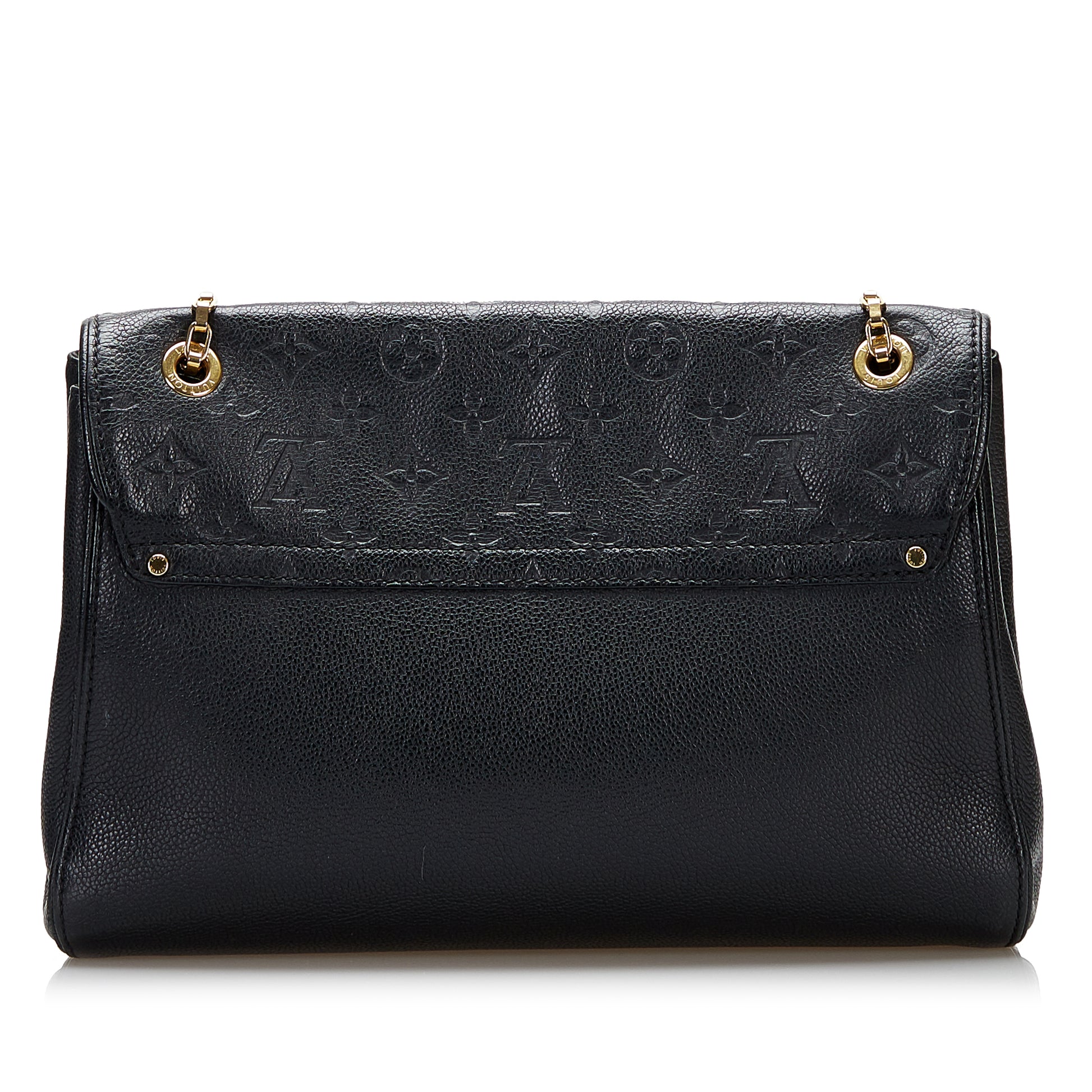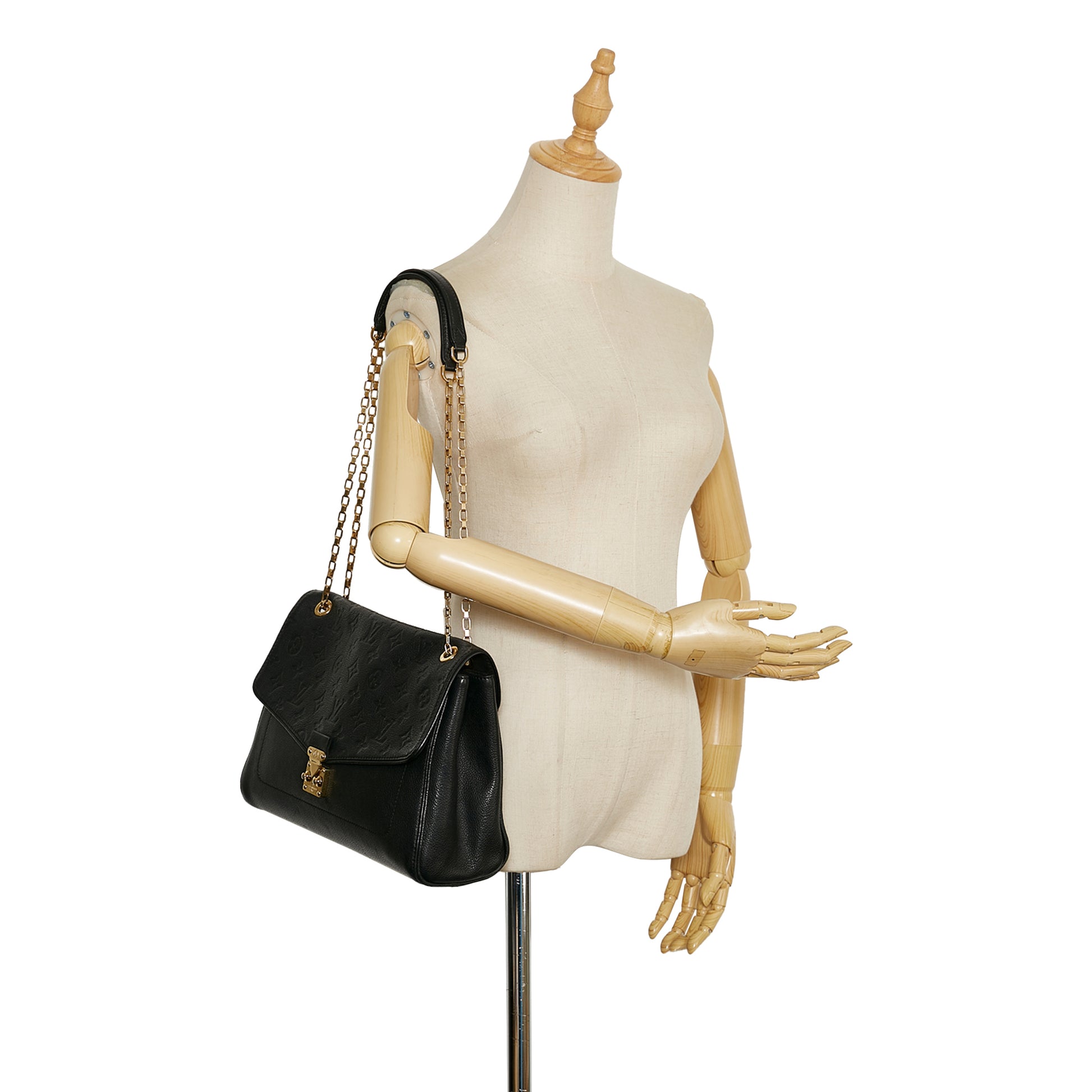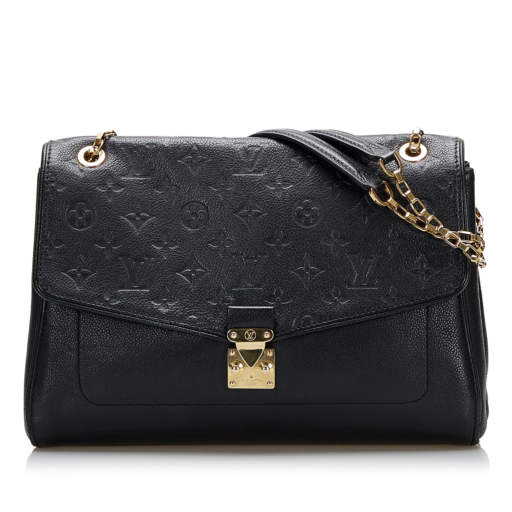 The Saint Germain MM features an empreinte leather body, chain and leather shoulder straps, a front flap with push lock closure, and an interior zip pocket.