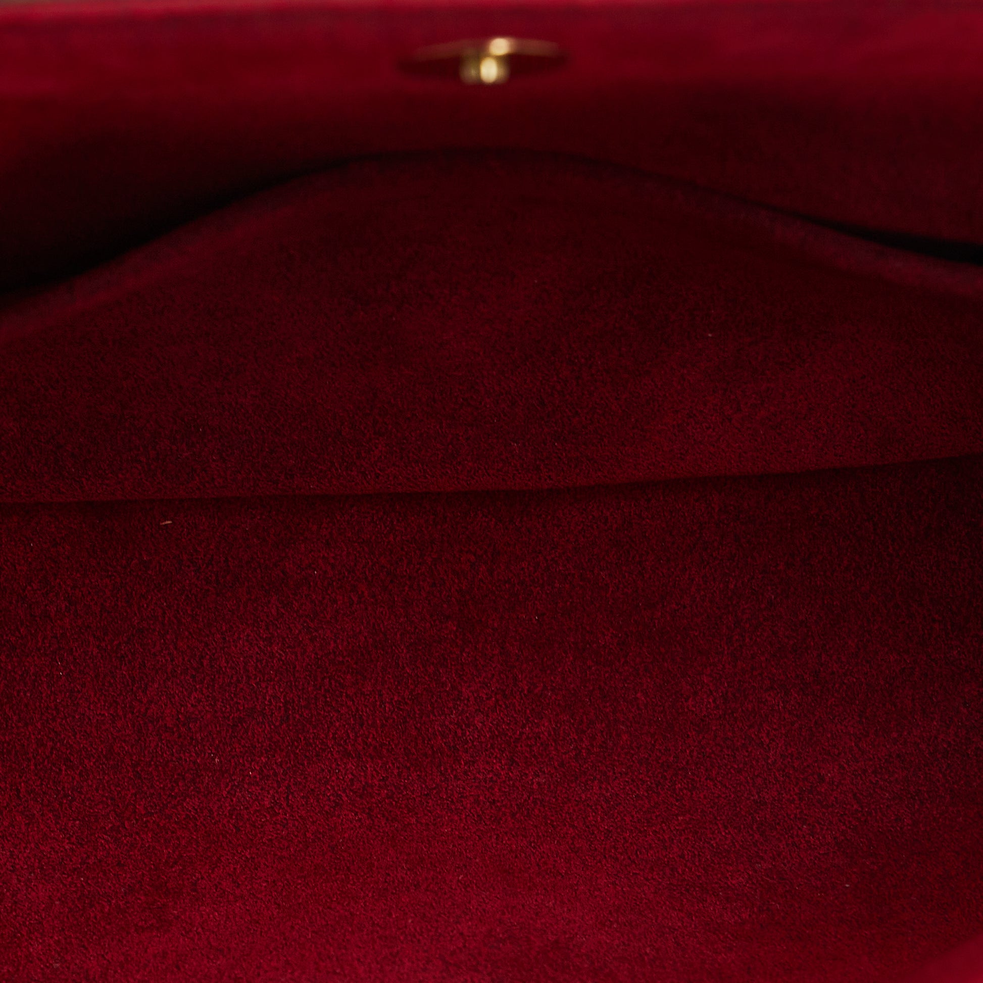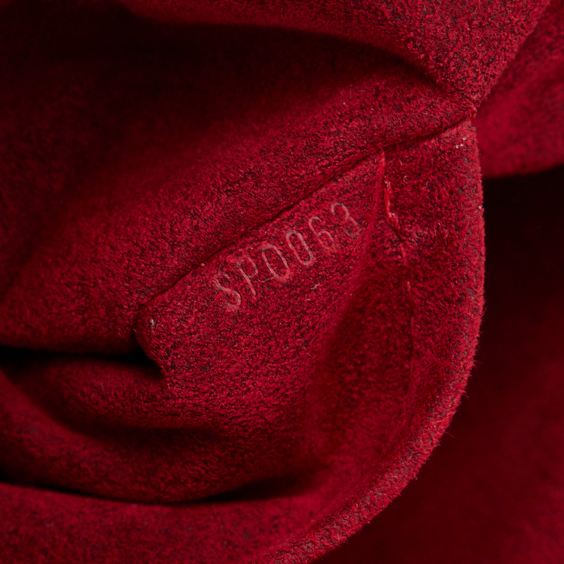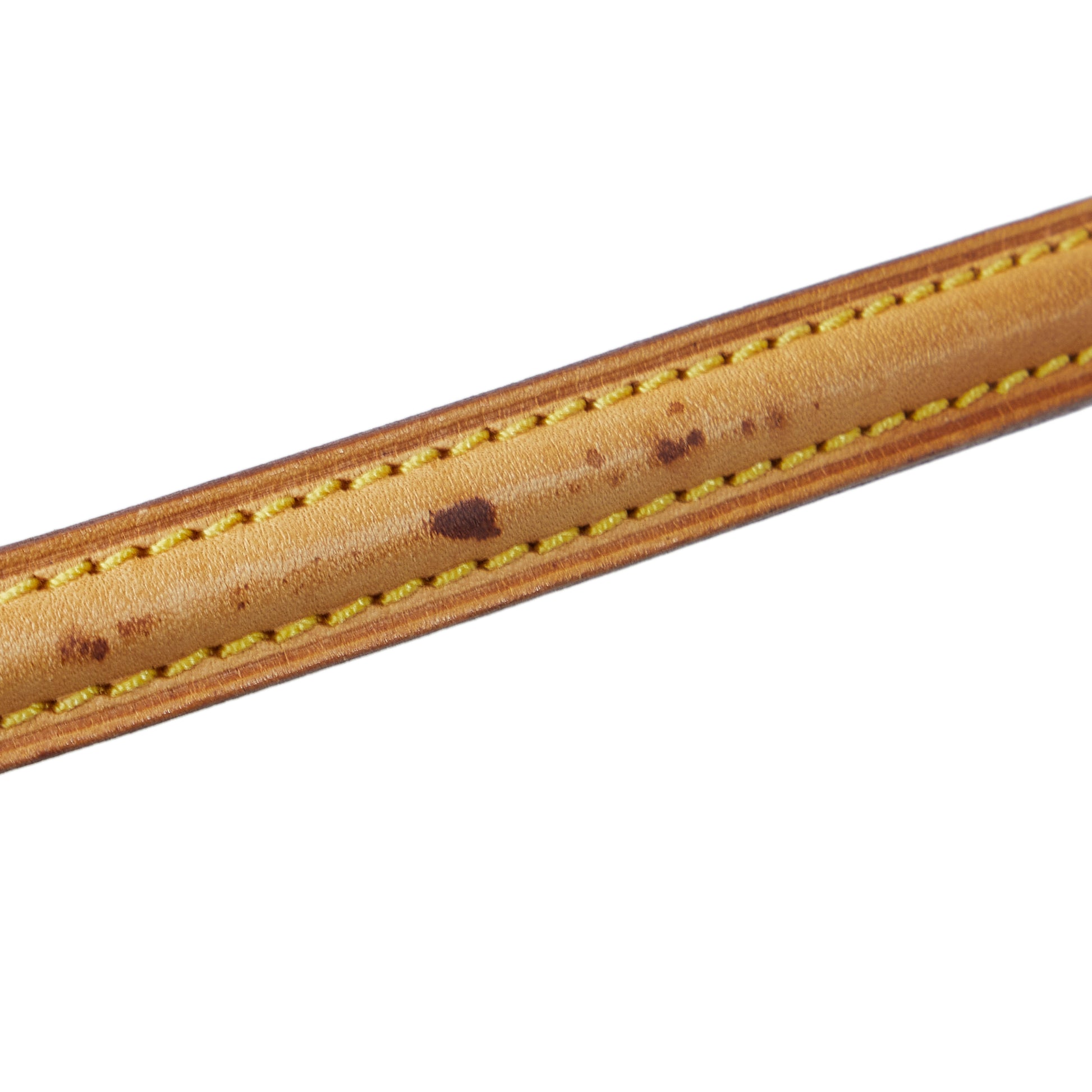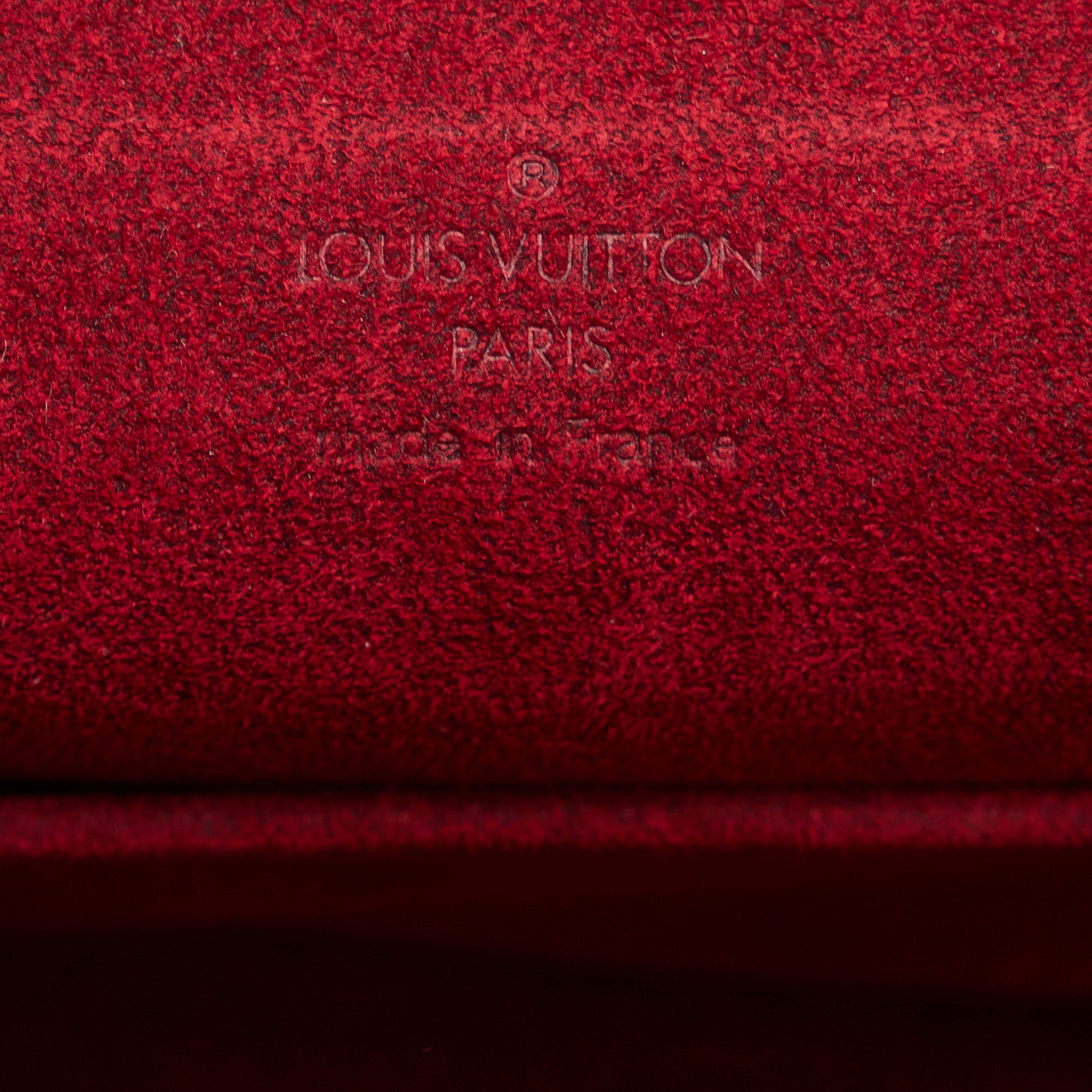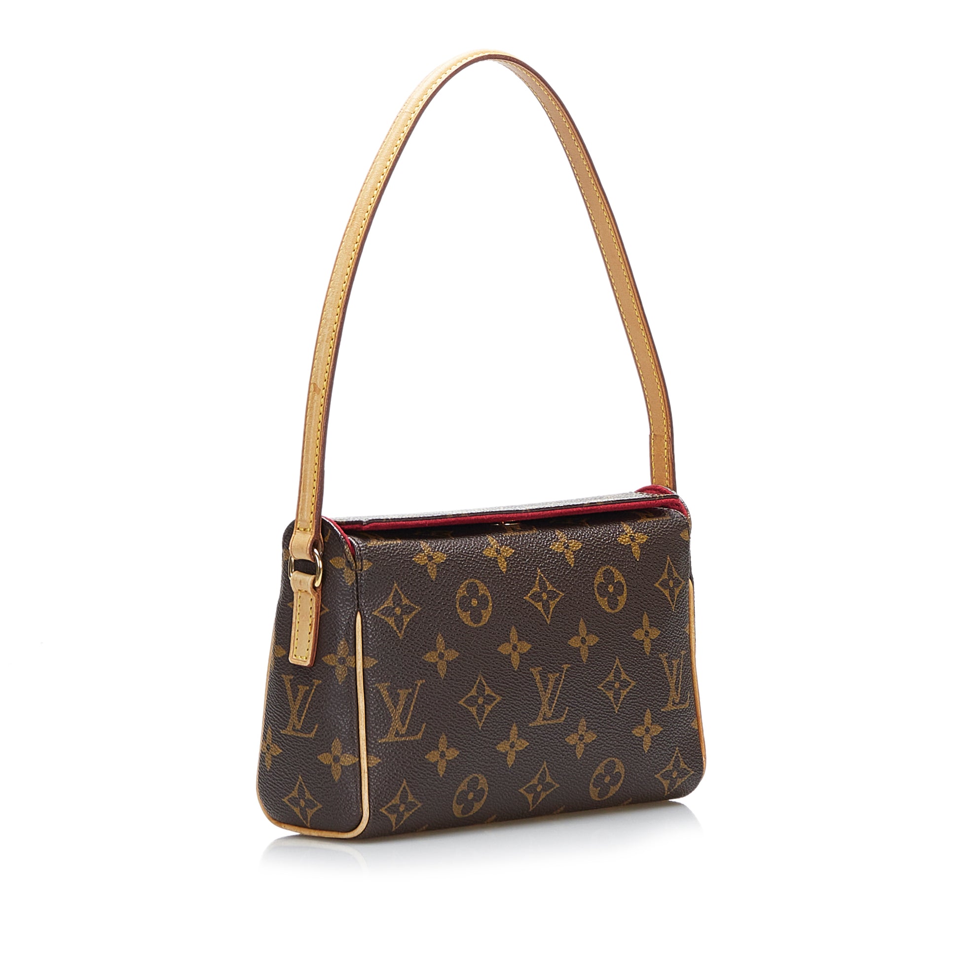 The Recital features a monogram canvas, a flat leather strap, a top fold over with a magnetic closure, and an interior slip pocket.
